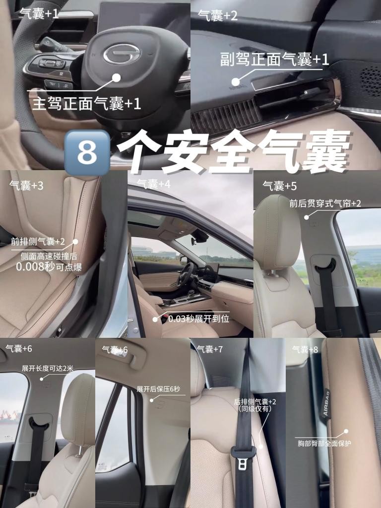 单是安全气囊,传祺GS4 MAX就配备了同级罕见的8安全气囊,其中还包括2个后排侧气囊,搭配前后贯穿式侧气帘,在车内形成环抱式安全保护。同时,该车还有8项L2级智能驾驶辅助功能、540°全景高清影像(含透明底盘)和电子儿童锁,以及核心乘员舱使用超高强度钢比例达100%的“装甲级”车身,由内到外,守护车上的每一位乘客的出行安全。