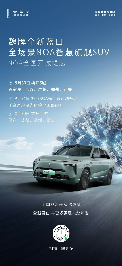 9月30日,魏牌全新蓝山的城市NOA再次取得重大进展,其智驾开城版图进一步扩张至石家庄、武汉、广州、郑州、西安五座重要城市。继保定、成都、重庆、深圳四城开通之后,全新蓝山的城市NOA智驶网络实现了又一次跨越式增长,这不仅展现了其在智能驾驶领域的领先地位,也标志着其“全国都能开”的目标正以前所未有的速度加速落定。