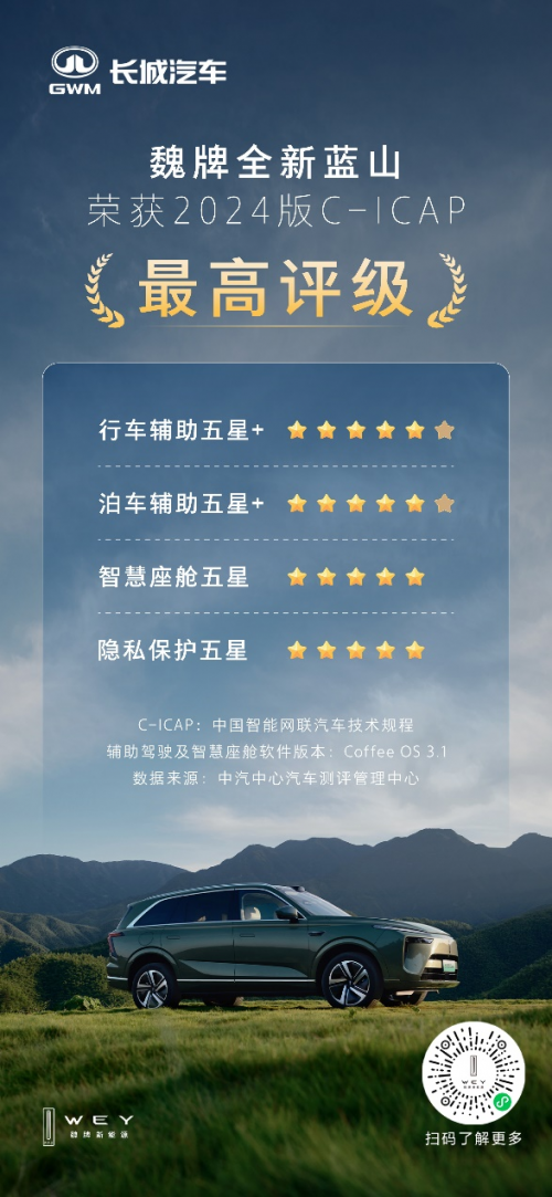 而魏牌全新蓝山,作为长城汽车首款全场景NOA智慧旗舰SUV,凭借搭载的长城汽车第三代智能驾驶系统Coffee Pilot Ultra和Coffee OS 3智慧空间,成功斩获C-ICAP智能驾驶辅助“五星+”的最高评级。基于Orin-X高算力域控平台,魏牌全新蓝山配备27个智慧传感器,通过视觉与激光雷达的融合方案,在复杂场景中展现优异的避险能力和导航辅助驾驶(NOA)稳定性。而在泊车辅助项目中,全新蓝山同样表现亮眼,无论是垂直车位还是水平车位,都能轻松应对,特别是在泊入过程中,能在行人穿越时迅速刹停避让,提供安全便捷的泊车体验。