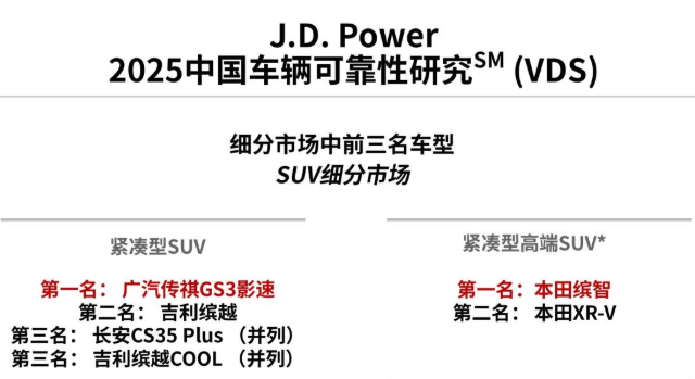 销量是产品实力的直接体现,而品质与口碑则是最好的“护城河”。据中国汽车质量网统计,影速自2023年起稳居自主品牌小型SUV质量冠军,是大厂品质的有力体现。同时,在《J.D.Power2025中国车辆可靠性研究(VDS)》 中,影速荣获紧凑型SUV可靠性第一名;在《J.D.Power2025中国汽车产品魅力指数研究(APEAL)》 中,影速同样位列紧凑型SUV榜首,意味着用户在实际用车中,对其设计、性能、智能化及驾驶感受给予了极高的评价。