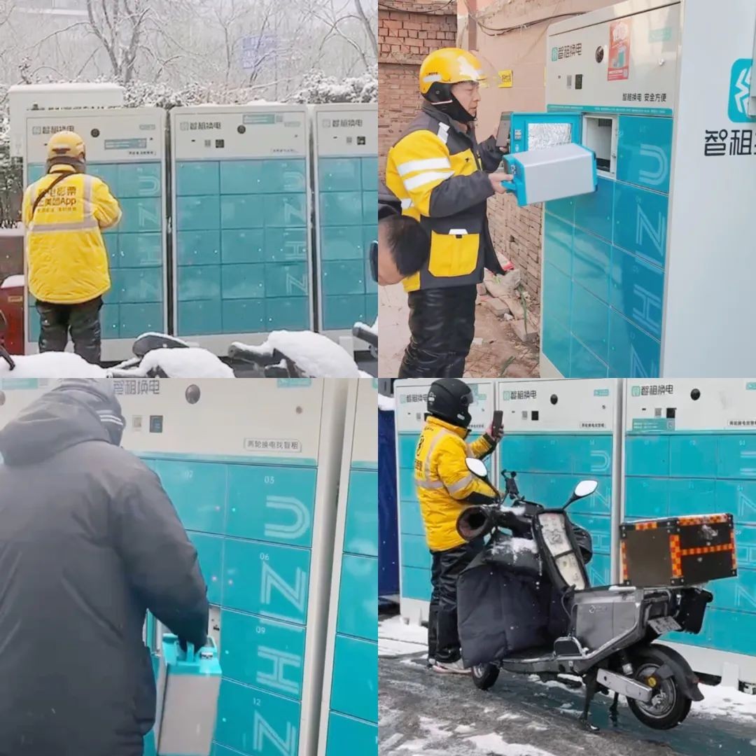智租换电在石家庄投放的电池是智租换电全新第四代锂电池【智霸】,作为智租换电的匠心新品电池,续航可以达到80KM以上,有效解决用户“续航焦虑”的痛点,加上密集的换电网点,可以说毫无里程压力。在电池安全方面,智霸在研发过程中,经过多项严苛测试,在一些极端工况中也能够保持性能稳定、确保安全性和稳定性。 “以前充电难又危险,看到充电爆炸的新闻都胆战心惊,但是因为要赚钱,只能调侃自己是用生命在跑单”,“还有那种骑着骑着半路没电的尴尬”,作为智租换电在石家庄的第一批“热忠粉”骑手小王感慨。在一个标有智租换电的蓝绿色换电柜前,他快速卸下电动自行车的电池,扫描柜上二维码后,柜门自动打开,他将手中的旧电池放入柜中关闭柜门,与此同时,另一扇柜门自动打开,一块新电池被他取出放入电动自行车的充电仓内,接好插头。全程操作不过1分钟,换电只需10秒,骑手小王的电动自行车瞬间“满电复活”。“这个智霸电量99%,可以续航6小时,80公里。”小王展示手机智租换电APP中显示的续航里程。现在石家庄的气温零下已是常态,电池在低温环境下续航自然会缩短。但是也不用担心,路上如果骑着快没电的时候,只需要根据系统提示的最优路线即可到达最近的智租换电柜,进行新的换操作。“现在节约下来的时间,每天可以多跑十几单”。骑手小王也坦言,“中间试了其他些家换电品牌,看着不错其实不抗用。现在一直用智租换电,大品牌很靠谱,续航长,我们圈里都很认可”。