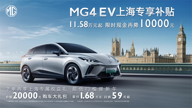 没买车的有福了!上海地区MG4 EV限时专供 10.58万起 再享20000元购车权益!
